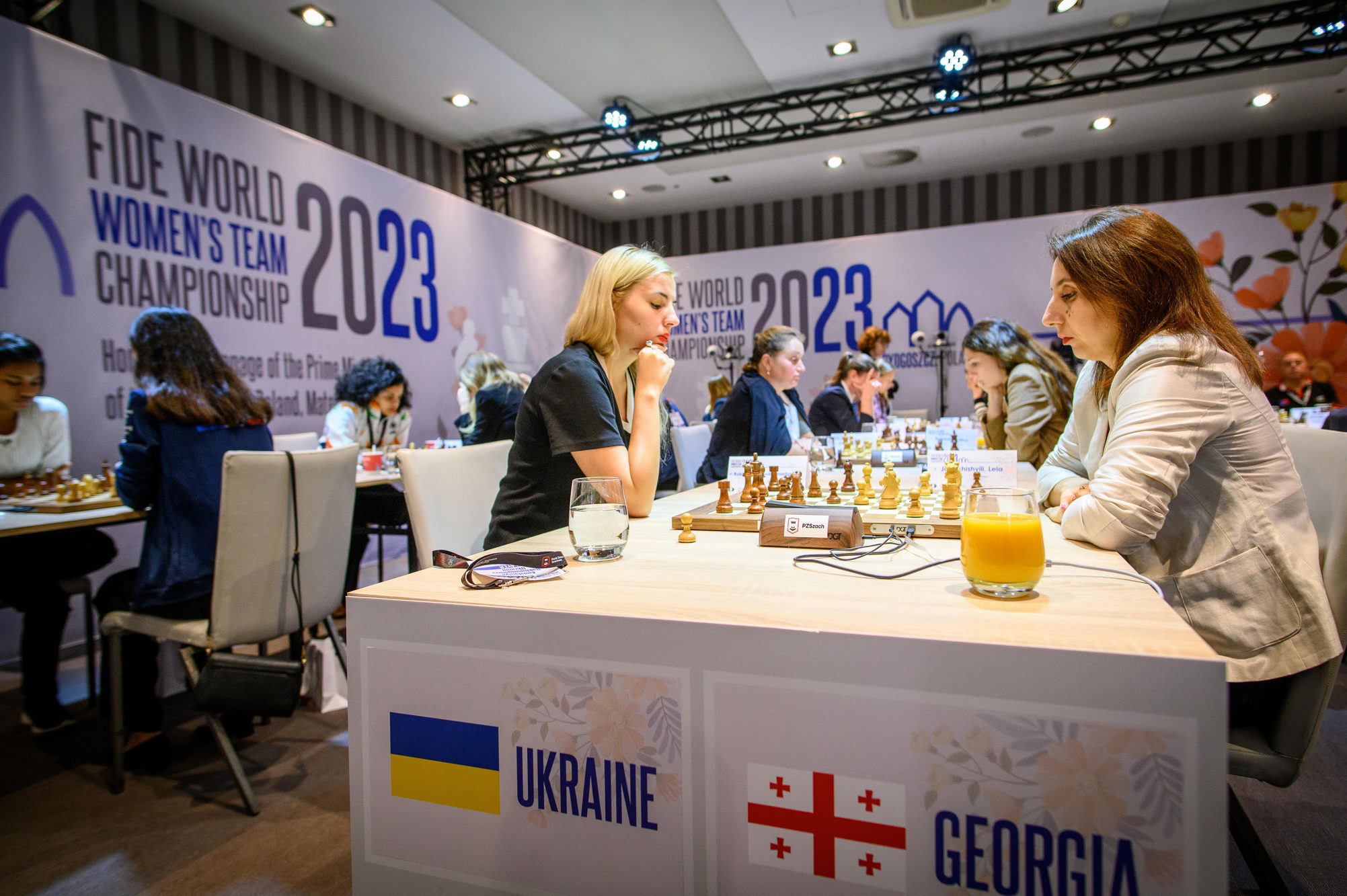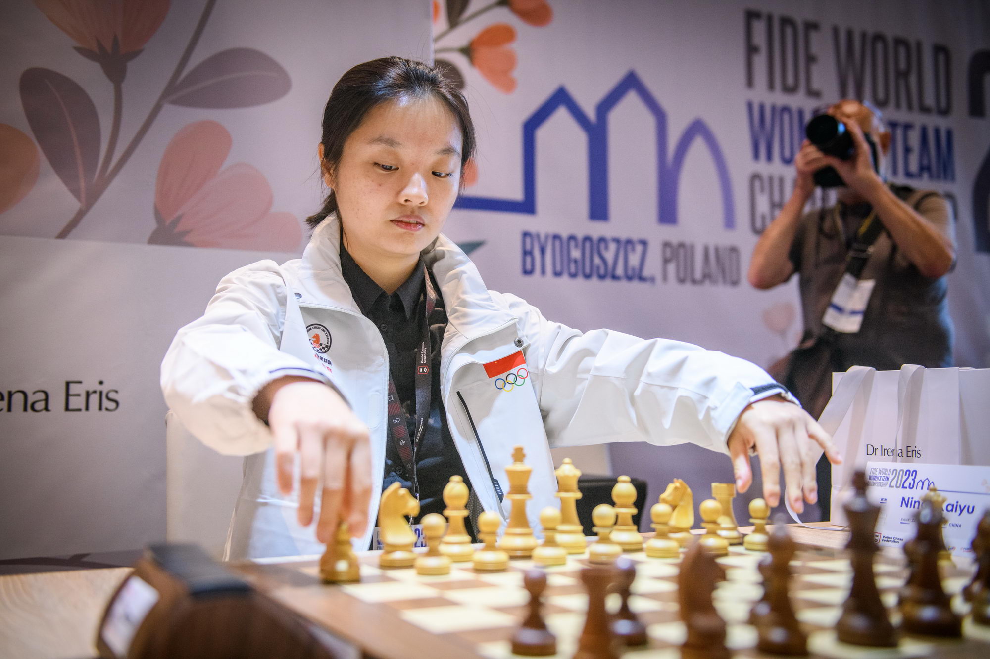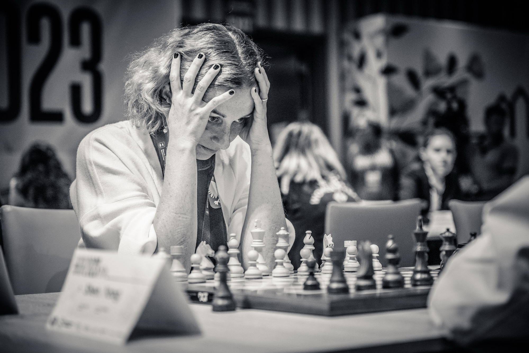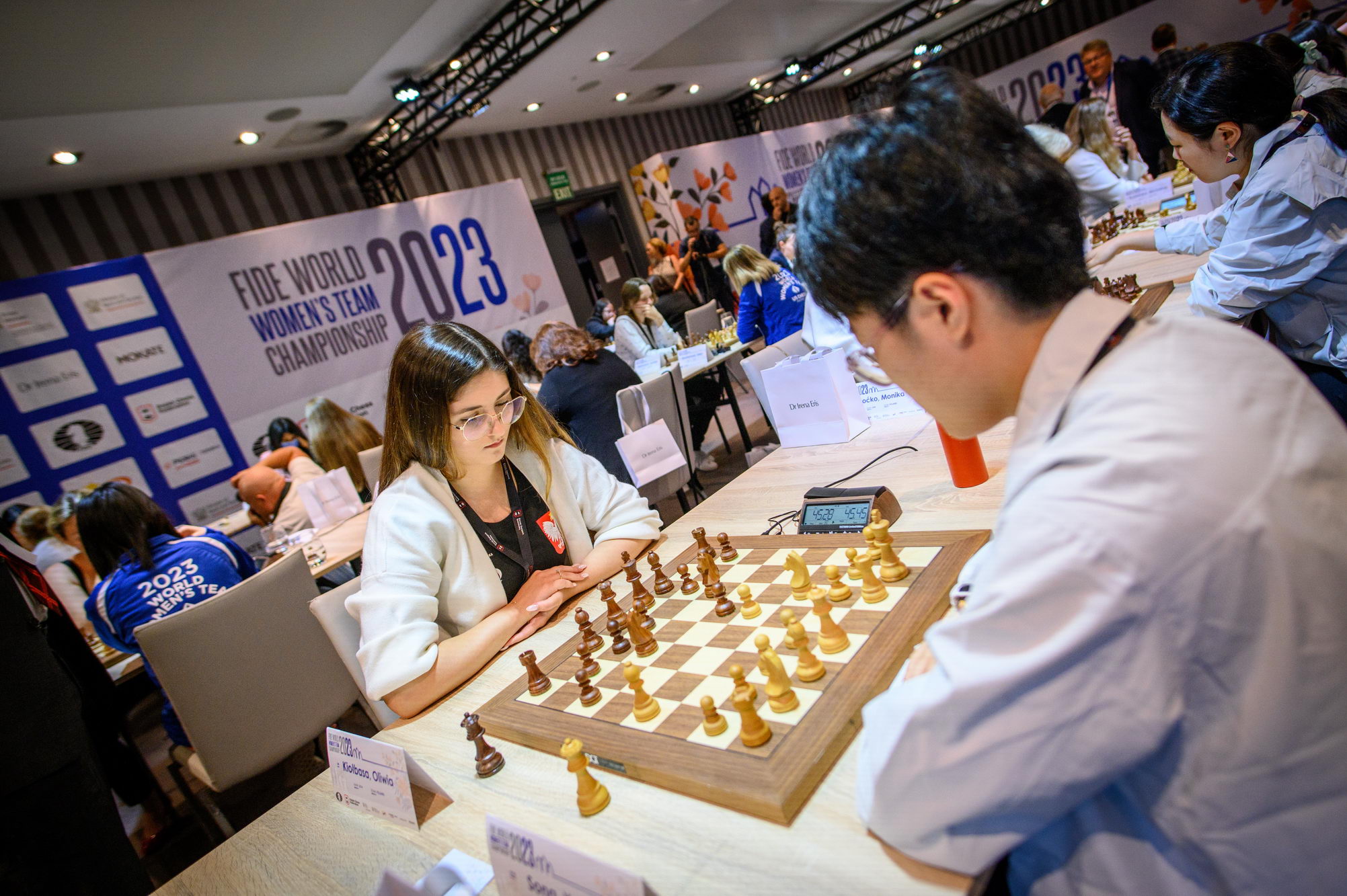 In Pool B, the home team lost against China by 2½ – 1½ in a match with several plot twists. Aleksandra Maltsevskaya, making her debut with the Polish national team, played a bit shaky in the opening (with black), and fell into a trap by Kaiyu Ning. Being down material since move 20, Aleksandra kept the game going hoping for a miracle, and her resilience was rewarded, as Kaiyu failed to deliver a final blow. The very experienced Monika Socko got a clear edge against Yang Shen when the young Chinese misplayed the opening; however, Socko rushed to simplify the position and let the advantage slip, agreeing to a draw after 31 moves. The match was decided on the last board, where IM Qi Guo outplayed Michalina Rudzinska.