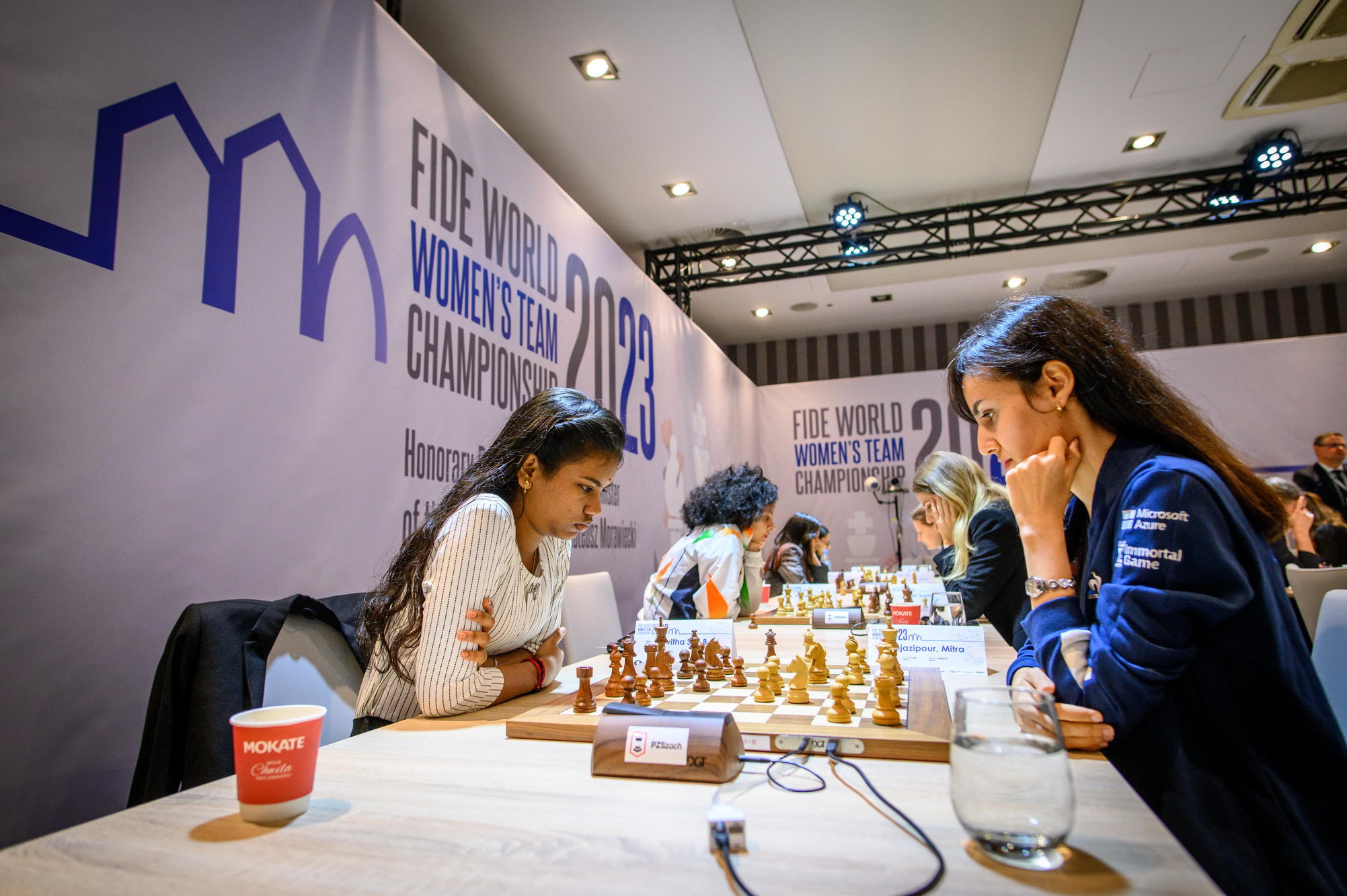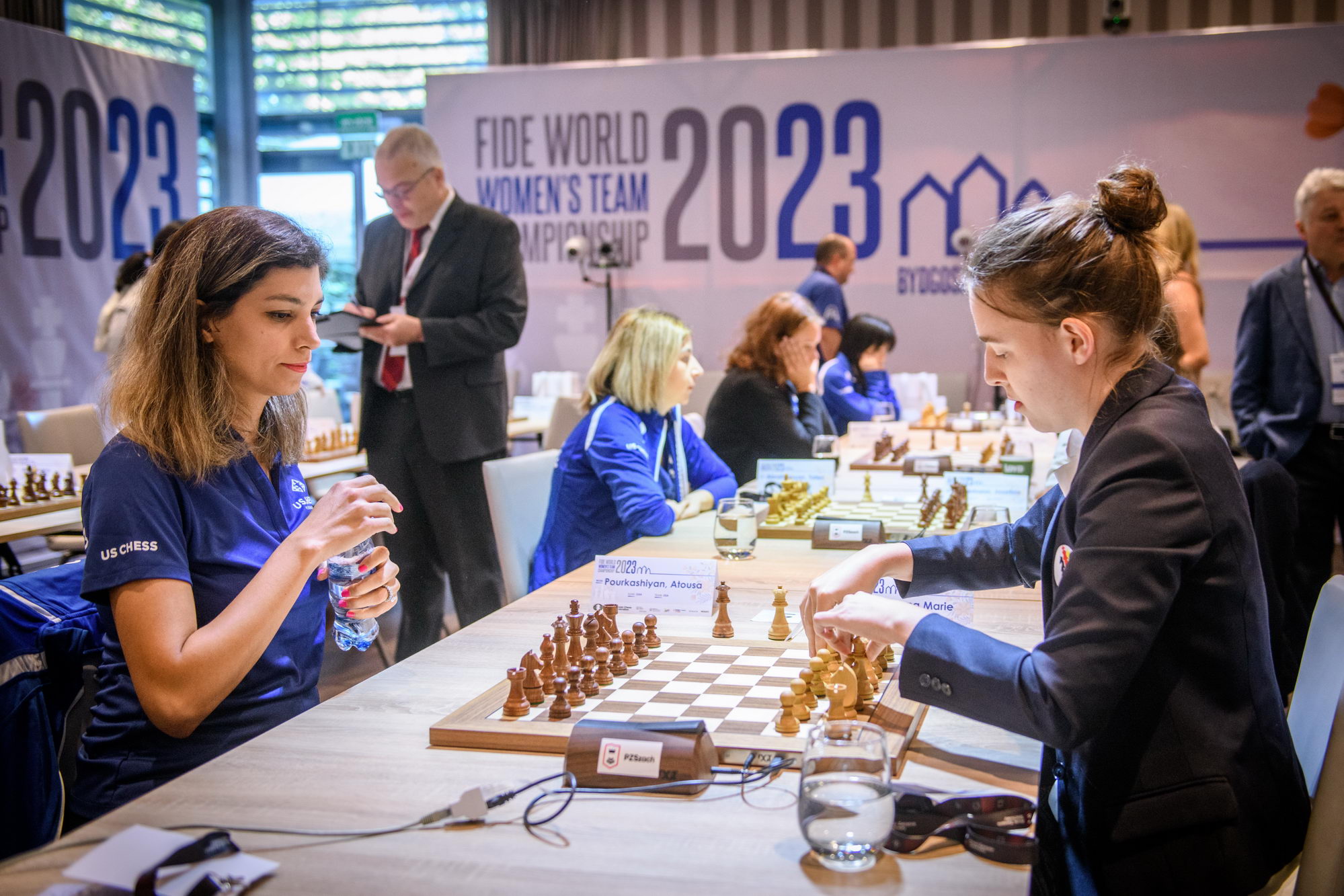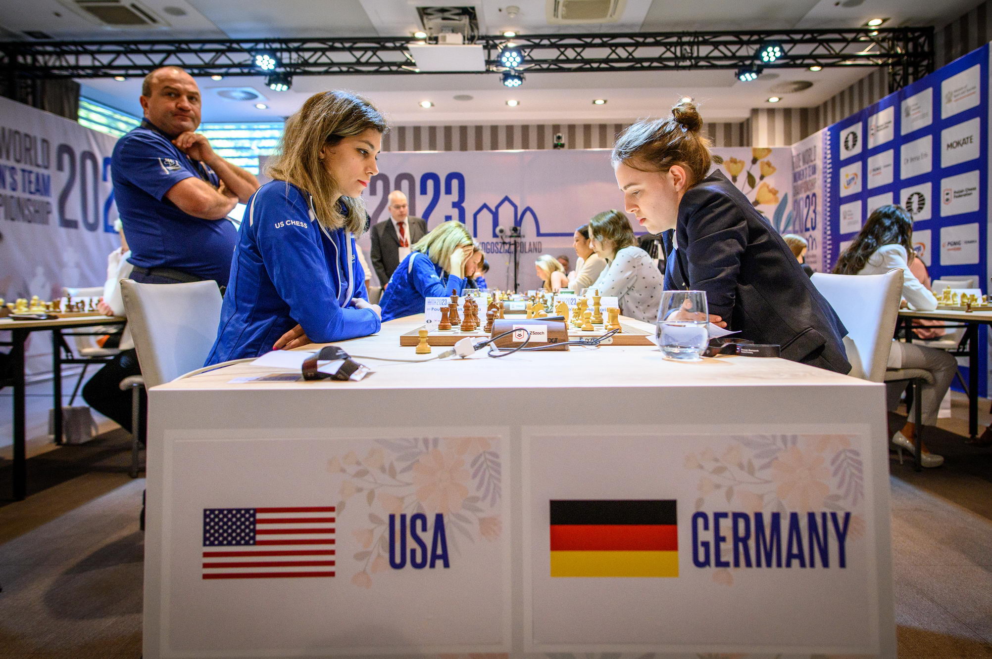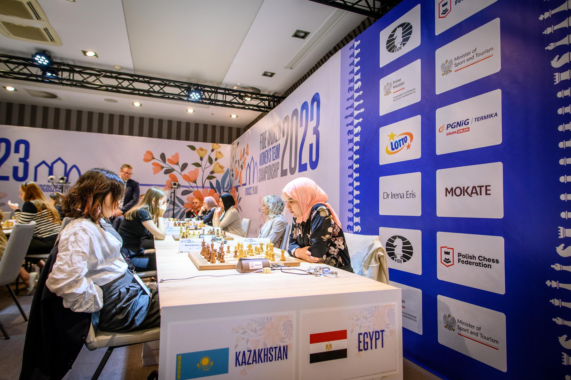 In Pool B, the home team lost against China by 2½ – 1½ in a match with several plot twists. Aleksandra Maltsevskaya, making her debut with the Polish national team, played a bit shaky in the opening (with black), and fell into a trap by Kaiyu Ning. Being down material since move 20, Aleksandra kept the game going hoping for a miracle, and her resilience was rewarded, as Kaiyu failed to deliver a final blow. The very experienced Monika Socko got a clear edge against Yang Shen when the young Chinese misplayed the opening; however, Socko rushed to simplify the position and let the advantage slip, agreeing to a draw after 31 moves. The match was decided on the last board, where IM Qi Guo outplayed Michalina Rudzinska.