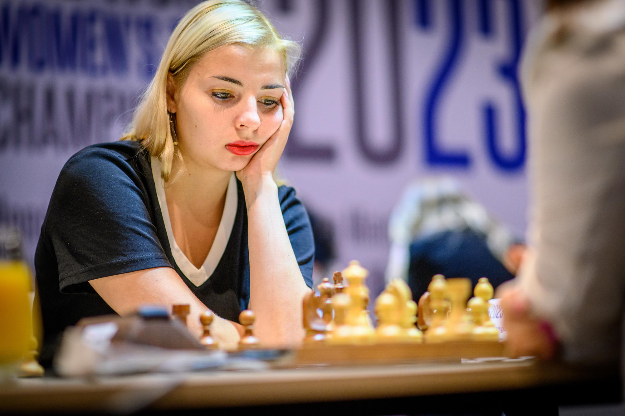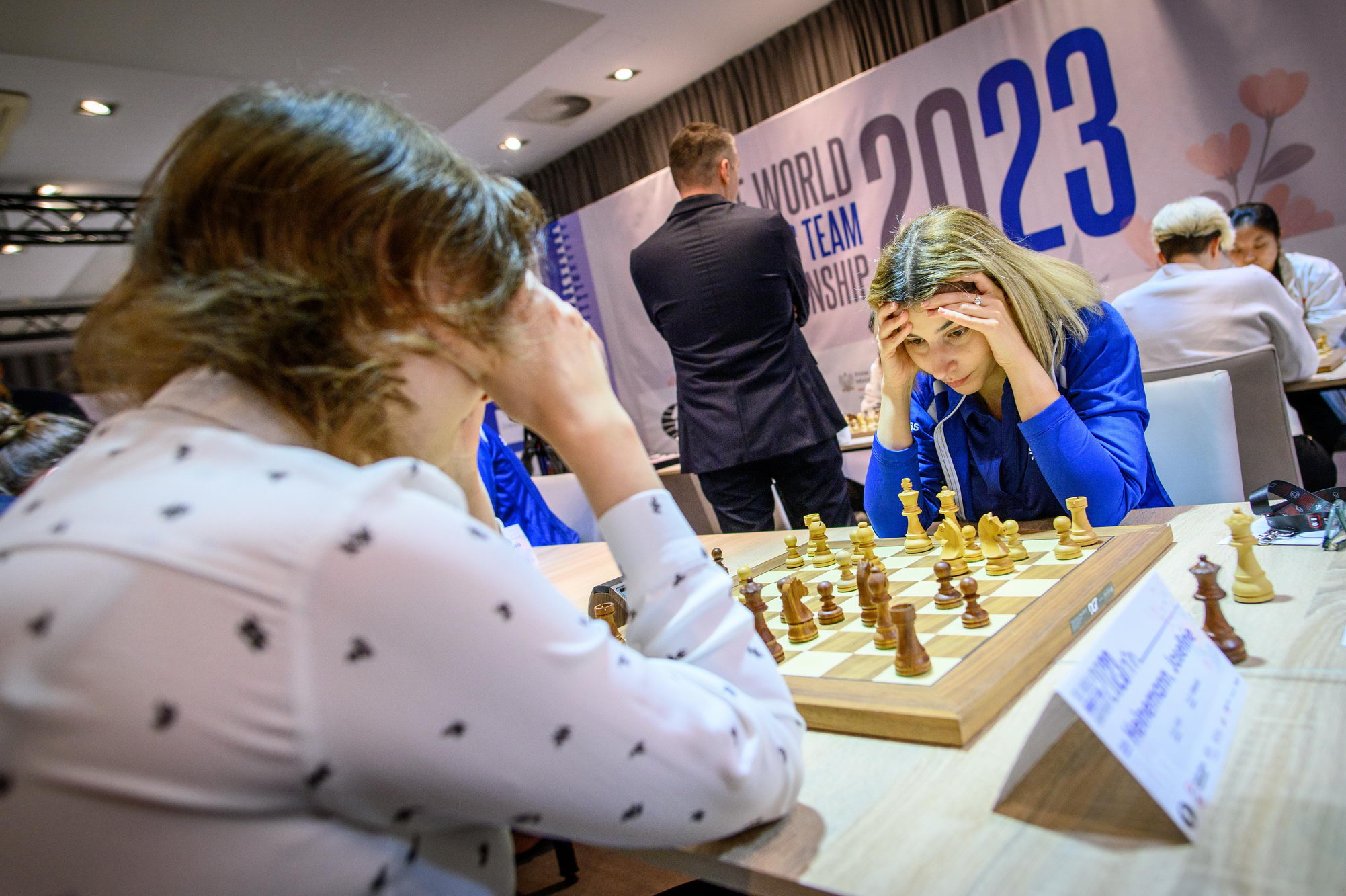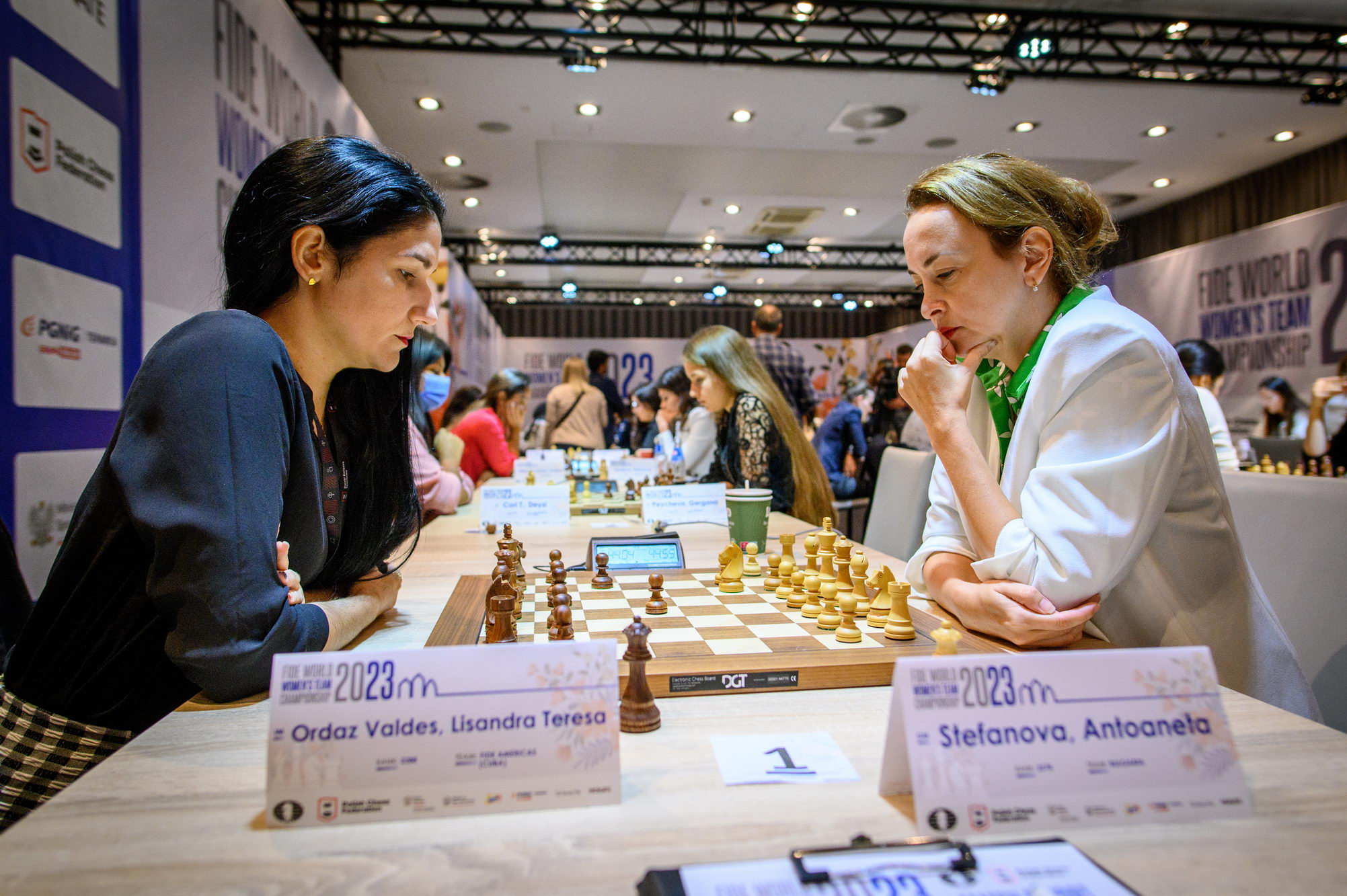 13-year-old Alice Lee defeated former Women’s World Champion Antoaneta Stefanova. Kazakhstan surprises, taking the lead following the defeats of India and Georgia.