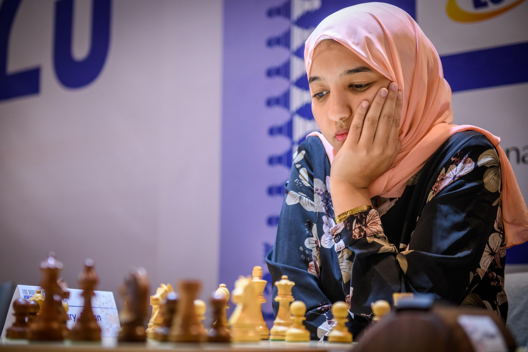 Kazakhstan got a scare very early into the game, as in the second board both players seemed to have mixed up the move order in a Najdorf. Shahenda Wafa played a premature 9.e5, and Kamalidenova got confused and played 9…dxe5 right away (instead of 9…Bb7), giving White the possibility to get a decisive advantage with 10.Ndxb5.