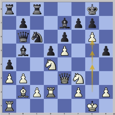 In pool B, the sensation was the triumph of the USA over Bulgaria by 4-0, including the first victory by 13-year-old Alice Lee in the competition, and her very first against a former Women’s World Champion. The game was equal, and should have ended in a draw, but in an apparently dead endgame, Stefanova went wrong (overpressed?) with 39.h6?, and Lee was quick to grab the opportunity.